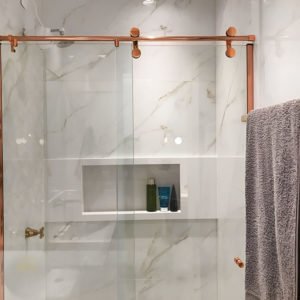 – Box de Correr: Perfeito para maximizar o espaço útil em banheiros menores, combinando praticidade com o acabamento sofisticado do rose gold.