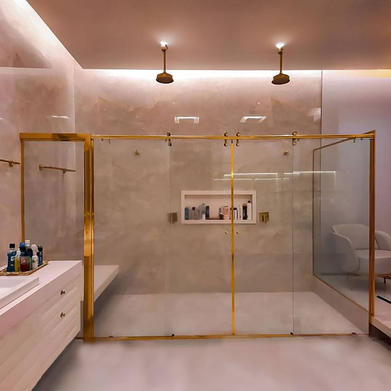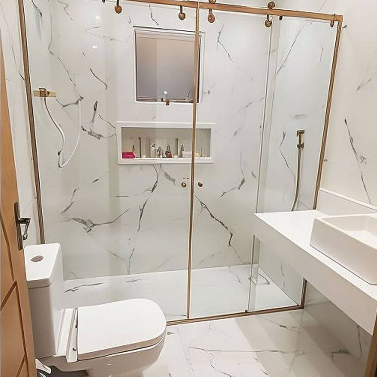 A personalização é a chave para criar um espaço que verdadeiramente reflete sua personalidade e estilo. Com o Box Elegance Due, a criatividade não conhece limites. Disponível em uma paleta de cores versátil – Branco, Dourado, Preto, Cromado, Rose – cada tonalidade é uma nova oportunidade para criar projetos únicos e diferenciados. Seja qual for a vibe que você deseja para seu banheiro, há uma cor de Box de Vidro para Banheiro Elegance Due que complementará perfeitamente.