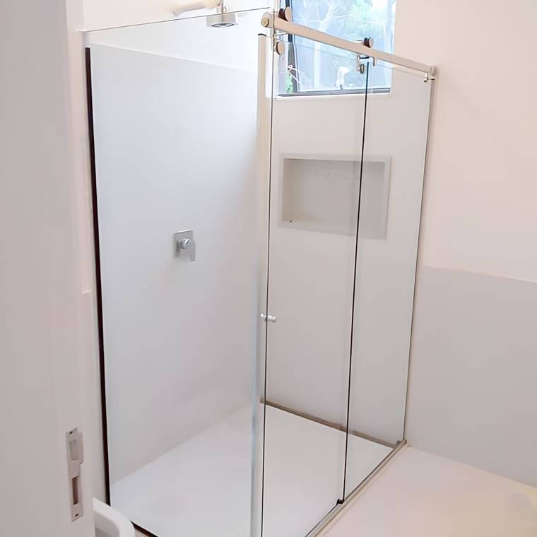 Vidro 8mm Temperado: O vidro temperado de 8mm oferece a máxima segurança, sendo quatro a cinco vezes mais resistente do que o vidro comum. Em caso de quebra, ele se estilhaça em pequenos pedaços menos cortantes, minimizando o risco de ferimentos. Transparente e brilhante, o vidro temperado confere uma sensação de limpeza e luz, ampliando visualmente o banheiro.