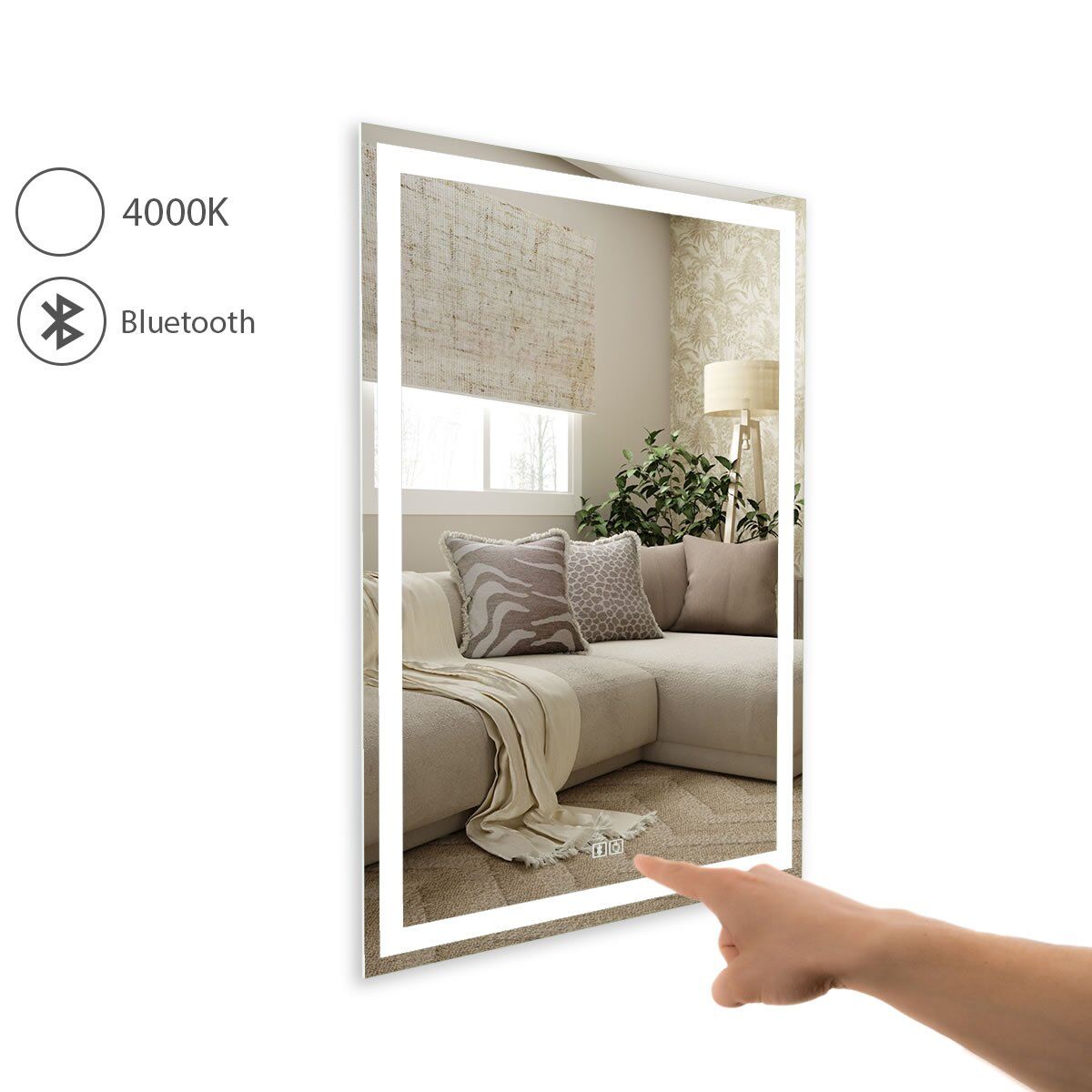 Utilizar espelhos LED em projetos de decoração permite não só a funcionalidade do reflexo, mas também a valorização do espaço com uma iluminação adequada. Este modelo com som Bluetooth oferece ainda a possibilidade de integrar música ao ambiente, ideal para momentos de relaxamento e para criar uma atmosfera especial em recepções e salas de espera.
