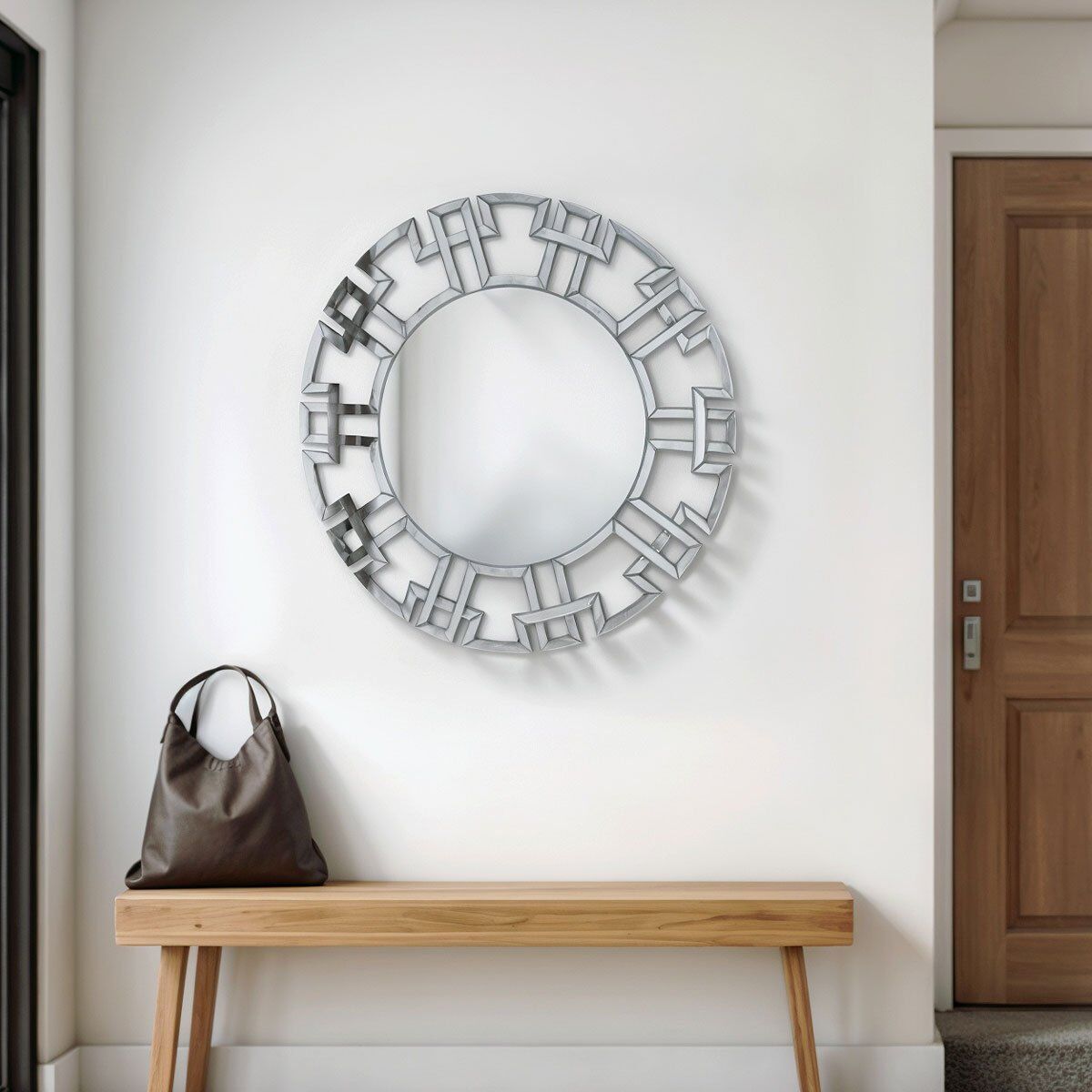 Em casas e apartamentos, o Espelho Decorativo Redondo Grego Grande é uma excelente escolha para quem busca unir estilo e praticidade. No quarto, ele pode ser instalado acima de uma penteadeira, oferecendo funcionalidade sem abrir mão da beleza. Já em banheiros, ele complementa a decoração com elegância, especialmente ao lado de outros espelhos modernos.