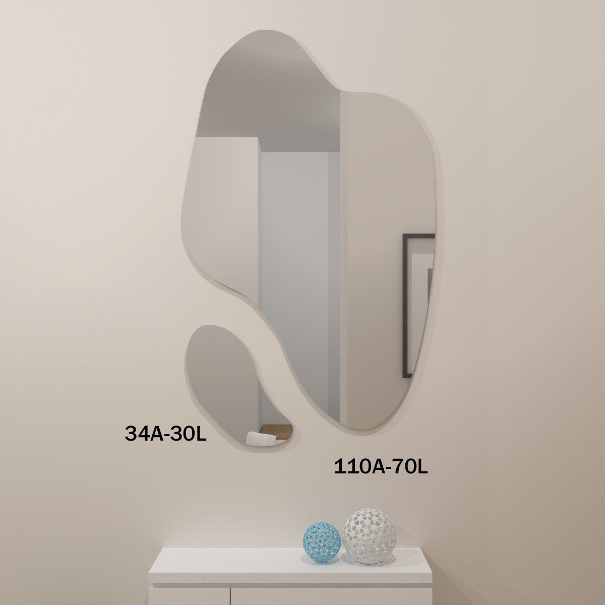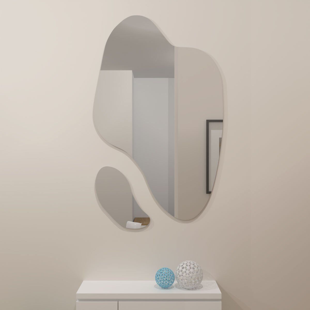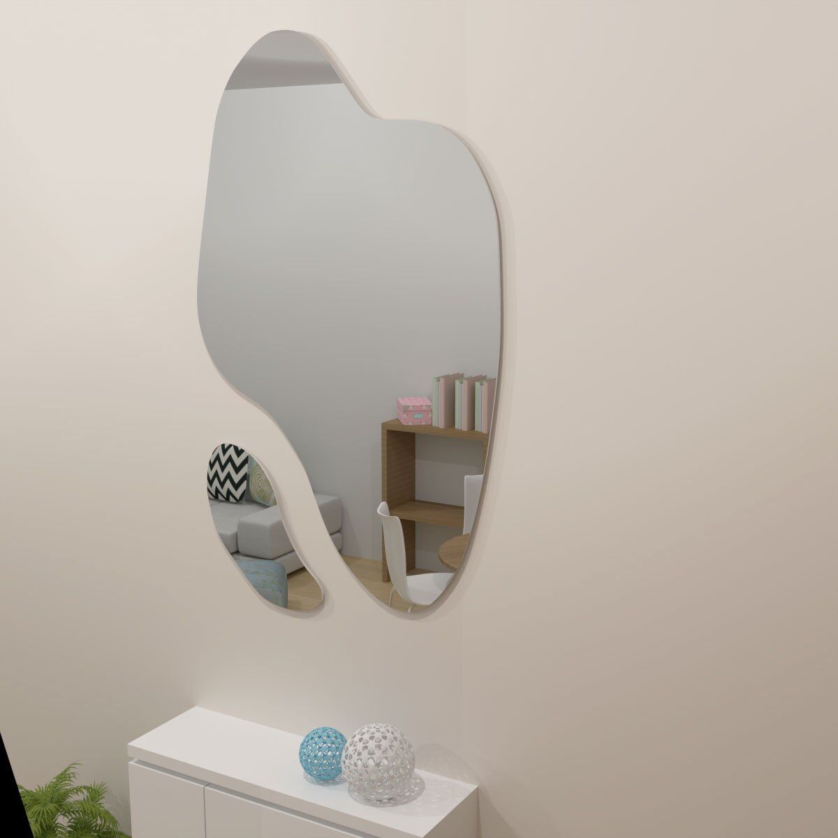 Seja para valorizar espaços pequenos ou complementar um projeto decorativo sofisticado, os espelhos orgânicos são uma excelente escolha. Seu formato inovador cria um efeito visual leve e harmonioso, ideal para diferentes estilos de interiores.